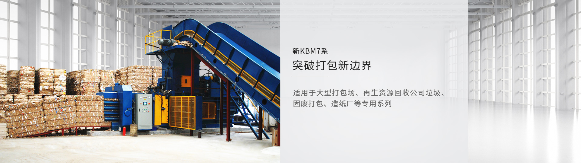 全面的配置升級為KBM7帶來了質的飛越。 30T錳鋼機身以及更寬大的下料口,讓KBM-7充滿強悍的工業氣息;搭載兩臺55KW伺服電機帶來153T點的壓縮力, 更將打包速度提升至30T/H的全新水 平,壓縮也更為緊致。